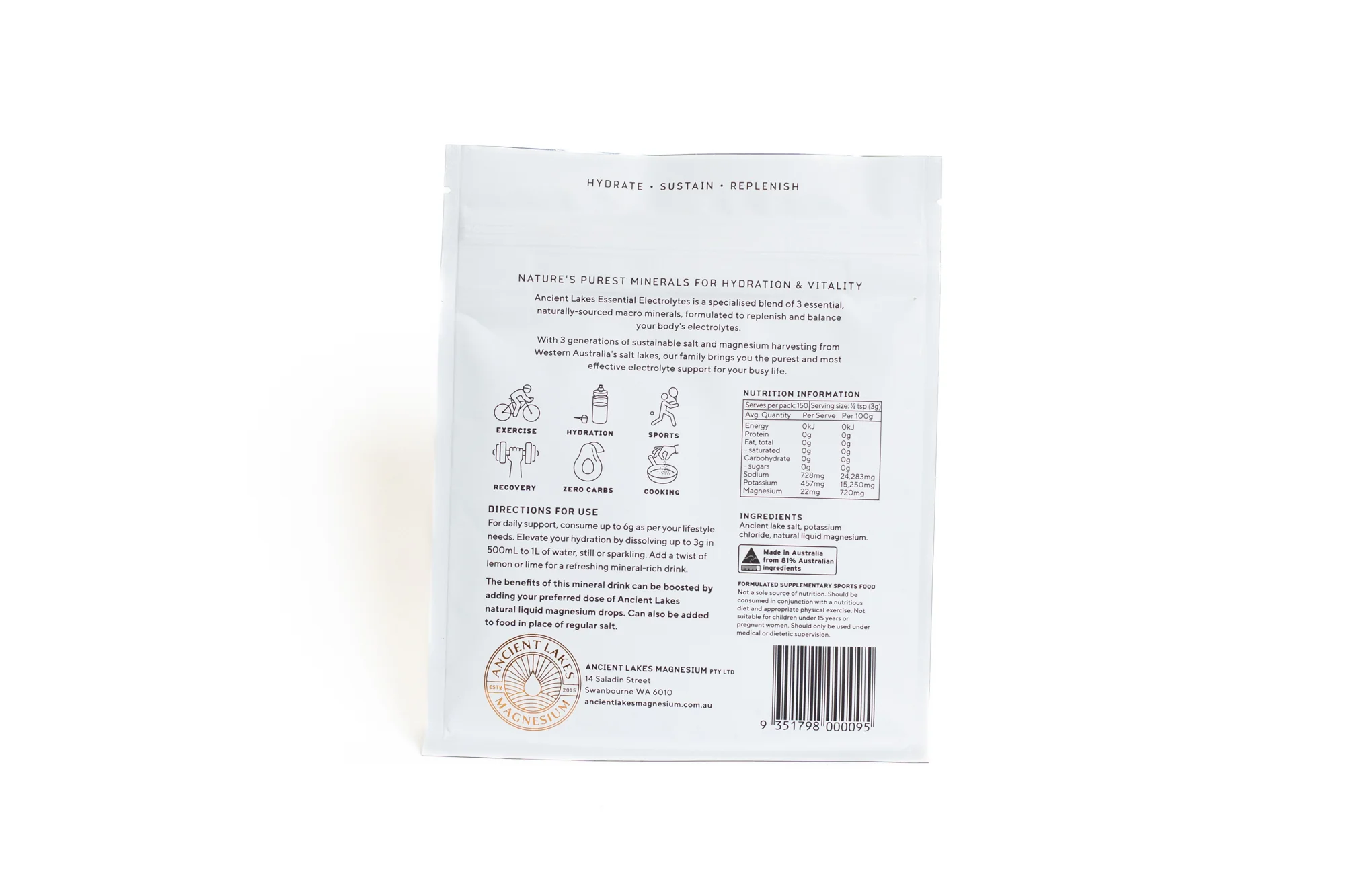 Ancient Lakes Mineral Balance Essential Electrolytes is a specialised blend of essential, naturally-derived macro minerals to help supplement and replace electrolytes.