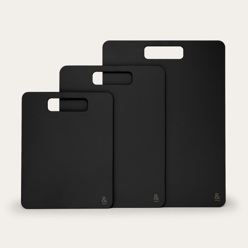 Made from compressed pine wood, our wood fibre chopping boards are durable and dishwasher safe.  Each Chopping Board Trio comes with three sizes; Small, Medium and Large to tackle all your meal prepping tasks.