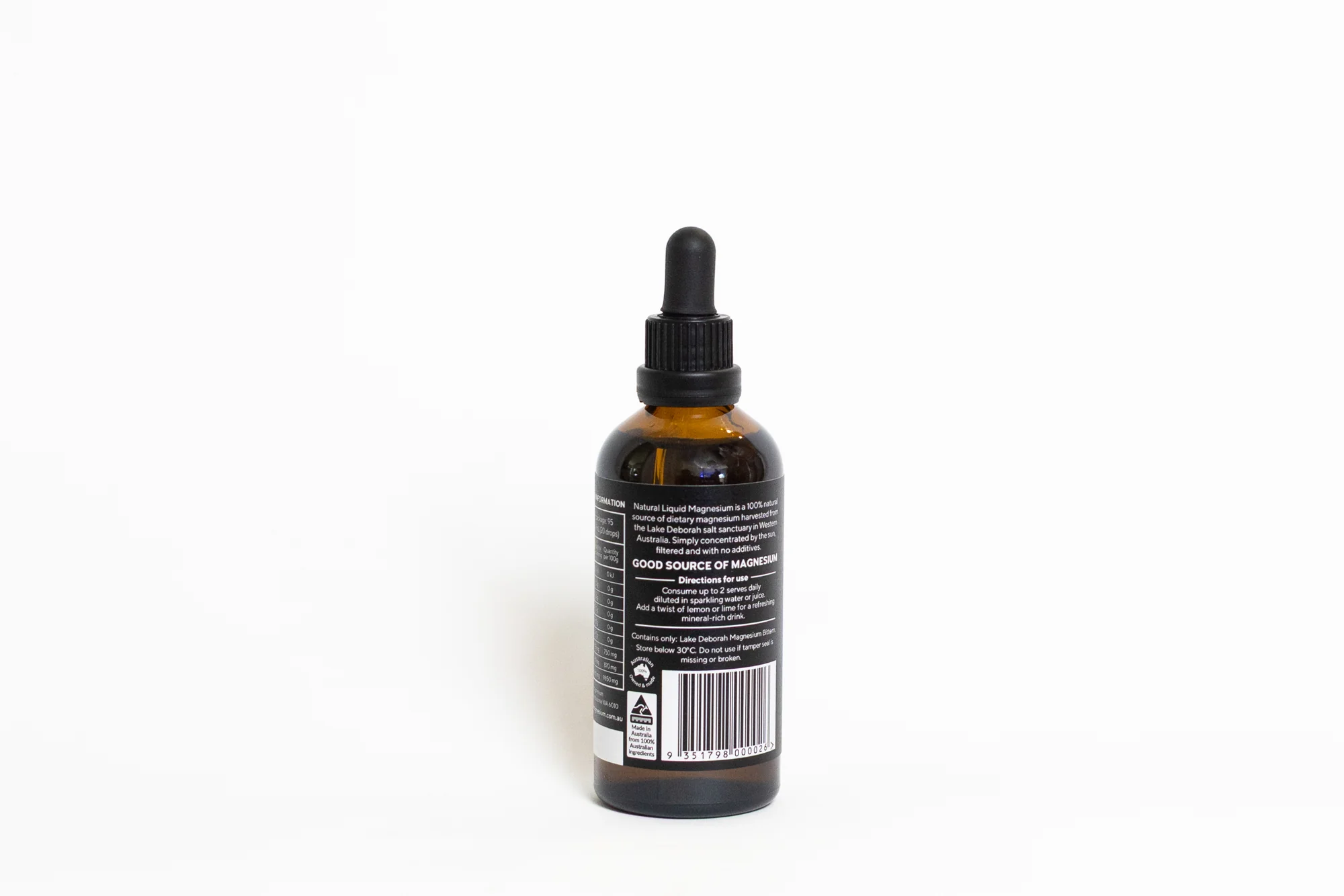 Our Natural Liquid Magnesium is called a bittern, a concentrated liquid that forms naturally from salt water. Rich in magnesium chloride and other essential minerals, it is gently harvested from Lake Deborah. This highly bioavailable and digestible source of magnesium offers a natural way to support your body's daily mineral intake.