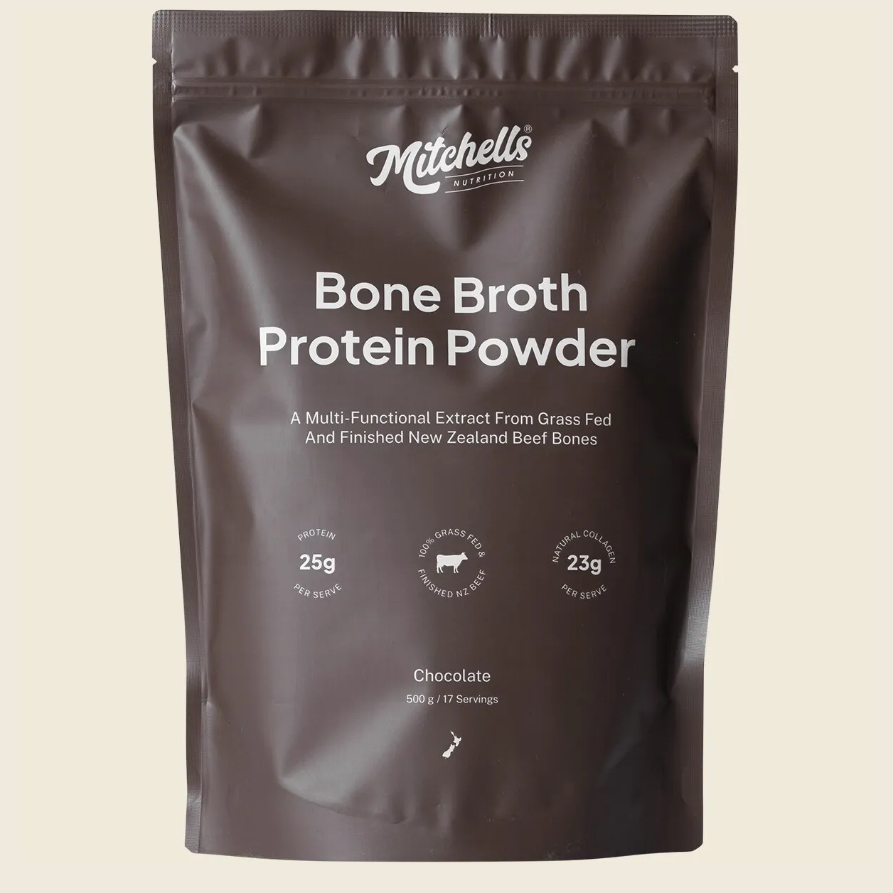 Mitchells Nutrition's best-selling, multi-functional 100% Grass-Fed Bone Broth Protein Powder. Bone broth is the most natural and easily digestible source of protein. Boosted with naturally occurring collagen, think of it as a total body support for joints, bones, muscles, skin, hair, and nails— ideal for any age at any stage.