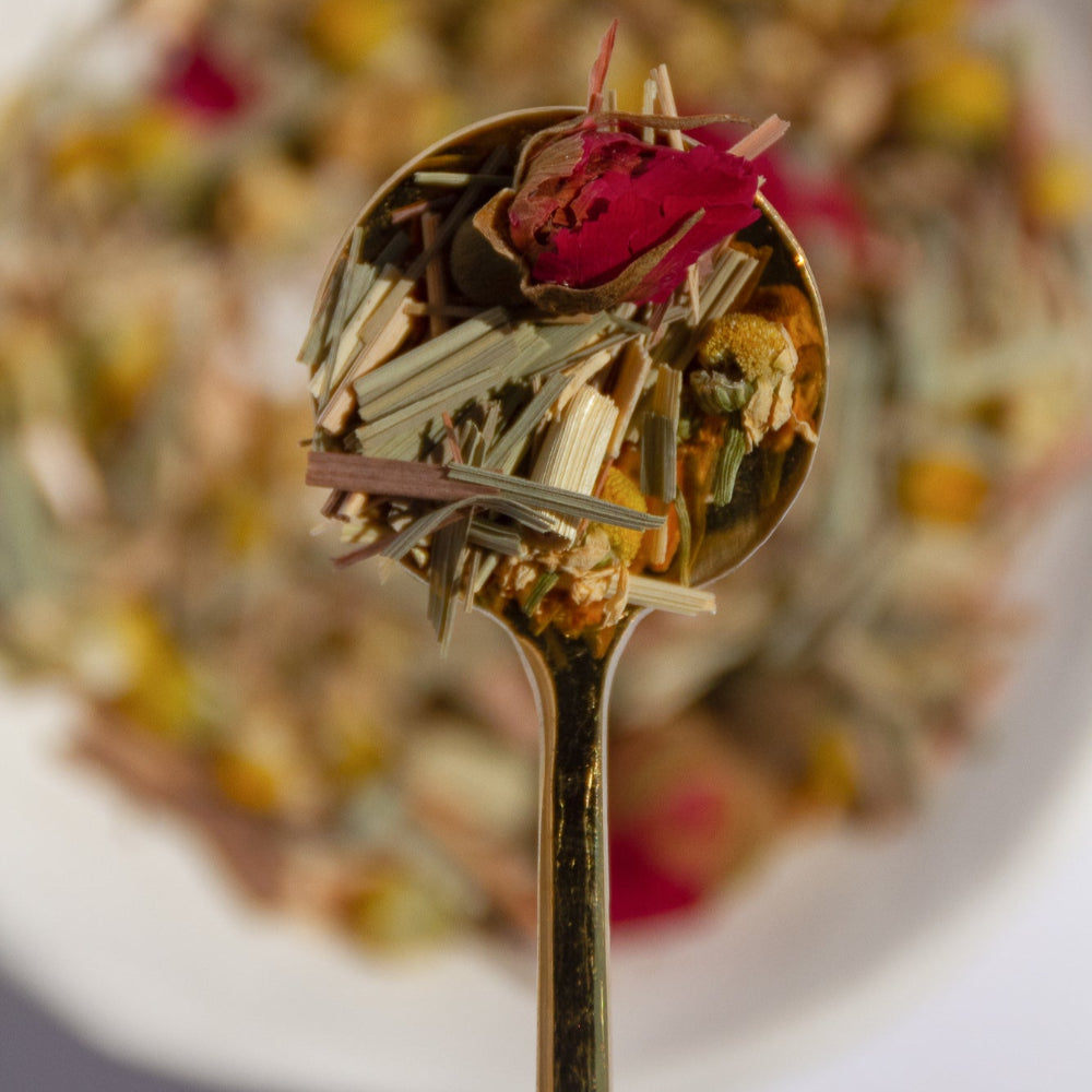 With its light floral notes and herbal warmth, Calm Tea fosters a sense of tranquility, helping to restore balance to both body and spirit. This Calm tea is a light, refreshing and citrusy tasting tea.