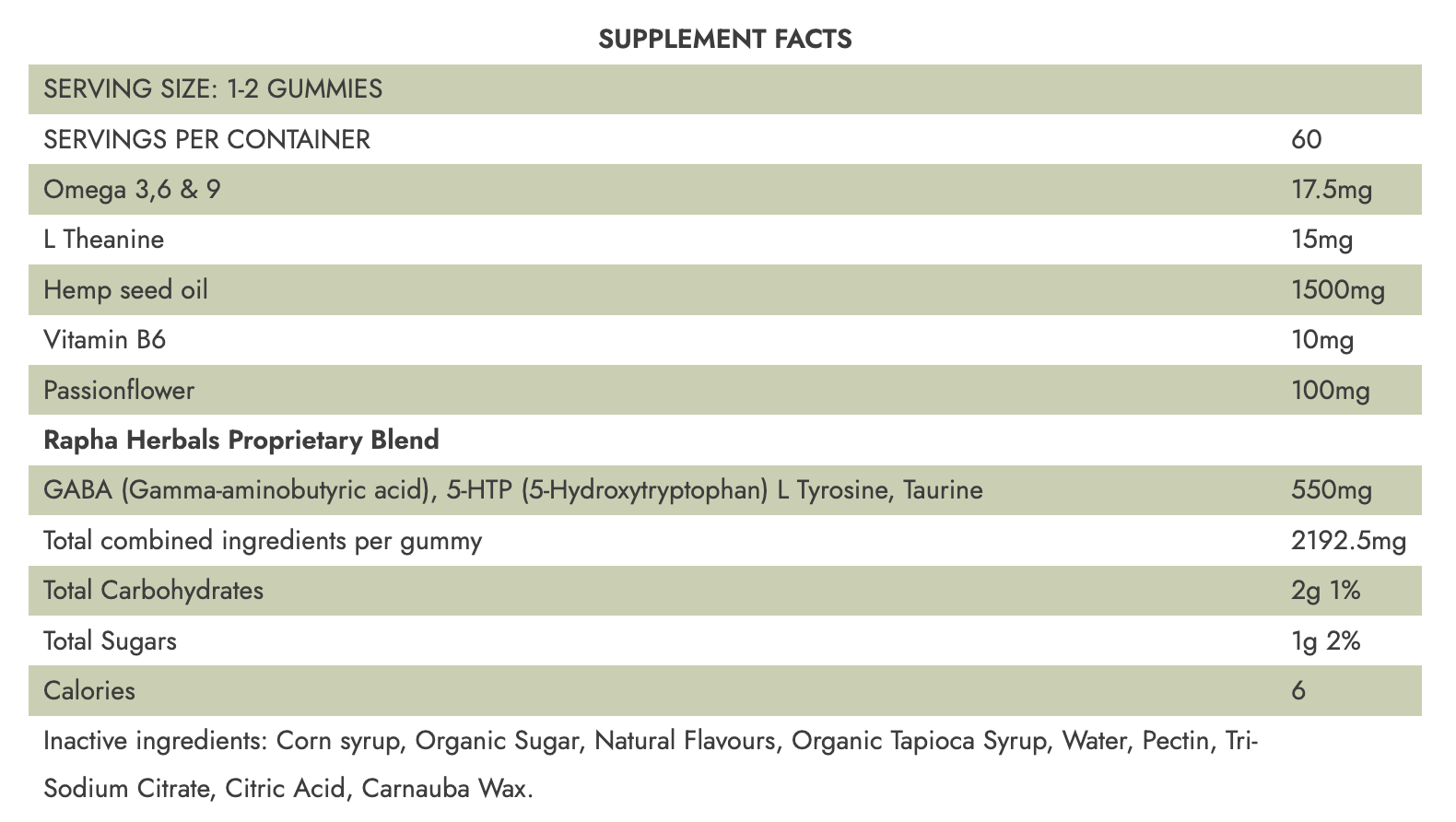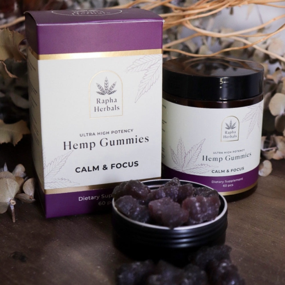 The synergy of ingredients in our Calm & Focus gummies are formulated to ensure you are in control of your emotions and have increased attention and productivity. With high-quality hemp and herbal serotonin and dopamine boosters, our gummies promote a natural peace and elevated levels of sustained concentration, all in one potent, easy-to-consume product. Explore the unique properties of our Calm & Focus gummies at Rapha Herbals — de-stress, relax and achieve! The sleep and calm & focus gummies have been designed to compliment each other. Rapha Herbals has your days and nights covered.