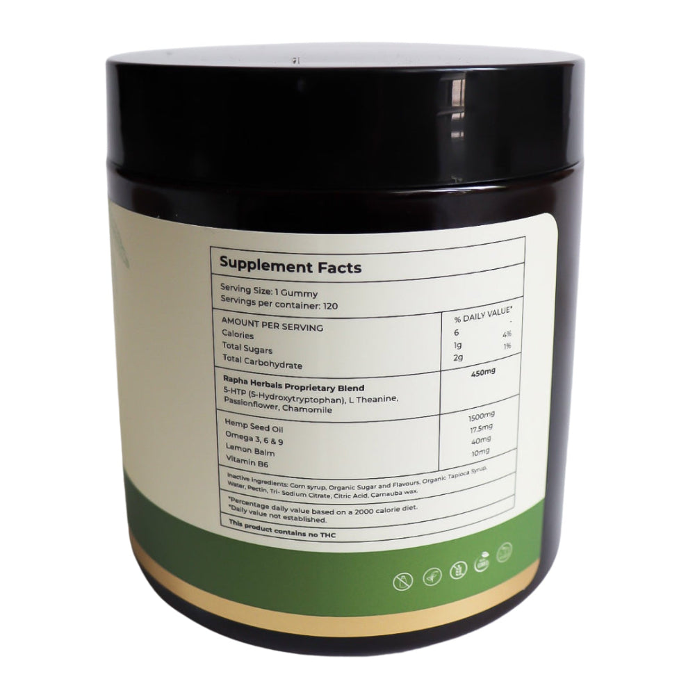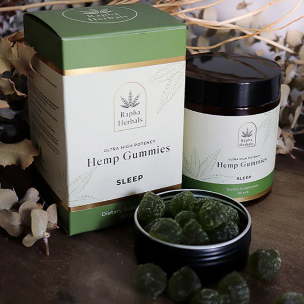 Rapha Herbal sleep gummies leverage scientific principles and natural ingredients to benefit your nighttime rest. The active compounds in hemp directly interact with the body’s endocannabinoid system, a critical regulator of functions such as sleep, mood and pain management. By supporting this system, our sleep gummies promote relaxation and significantly reduce worry and over analysing the events of the day, setting the stage for deep and restorative sleep.