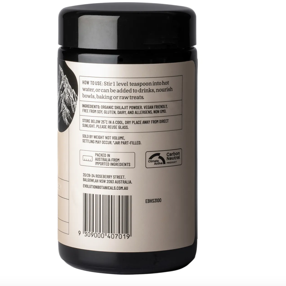 Evolution Botanicals Himalayan Shilajit extract powder is sourced from trusted Ayurvedic experts with 30 years' experience in processing botanical powders to the highest of international standards. The rock exudates are 100% water-extracted to a dry powder, and our rigorous third-party laboratory testing procedure guarantees safety, purity, and potency. Our product requires a remarkably small amount of excipient. This ensures that you get the maximum benefit from the Himalayan Shilajit active ingredients, without unnecessary fillers or additives.