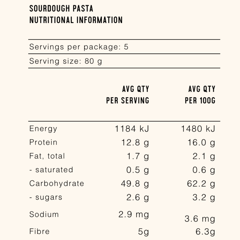 Ingredients: Certified Sustainable Stoneground Durum Wheat Flour, Certified Sustainable Stoneground Whole-Wheat Flour, Filtered Water, Sourdough Starter.