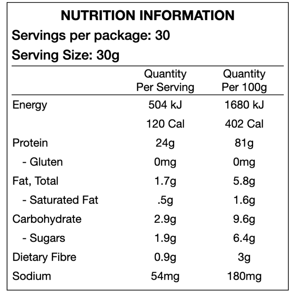 Ingredients: Australian Grass Fed Whey Protein Concentrate [Milk] (100%)