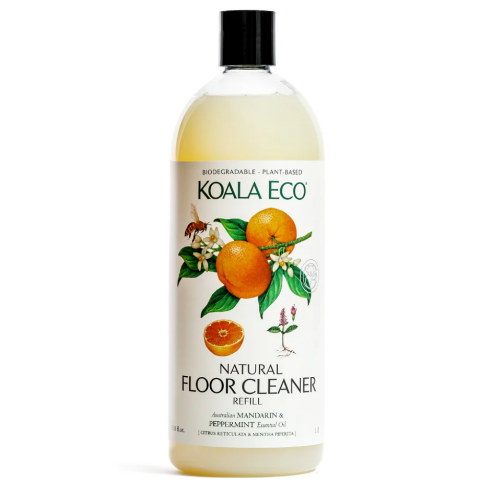Koala Eco's Mandarin & Peppermint Floor Cleaner combines nature’s most aromatic antiseptics in one powerful, anti-bacterial formula. This biodegradable and eco-friendly plant-based formula effortlessly cuts through grime without the use of harsh chemicals and is safe for use on any surface, including wood.